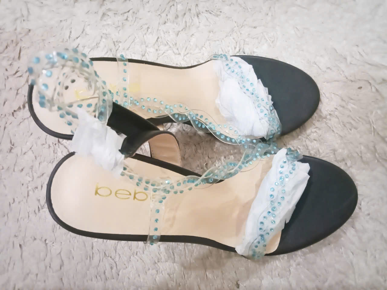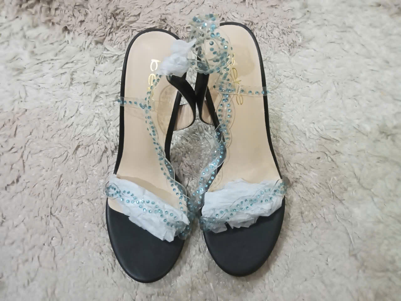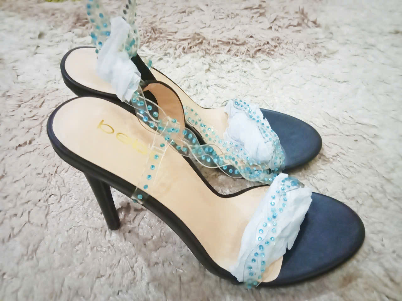 1 đôi màu đen duy nhất size 37-38, quai đính hạt xanh trời lấp lánh tuyệt đẹp cùng gót 12cm mềm mại tôn lên vẽ nữ tính dịu dàng mê đắm lòng người